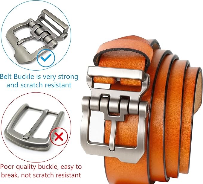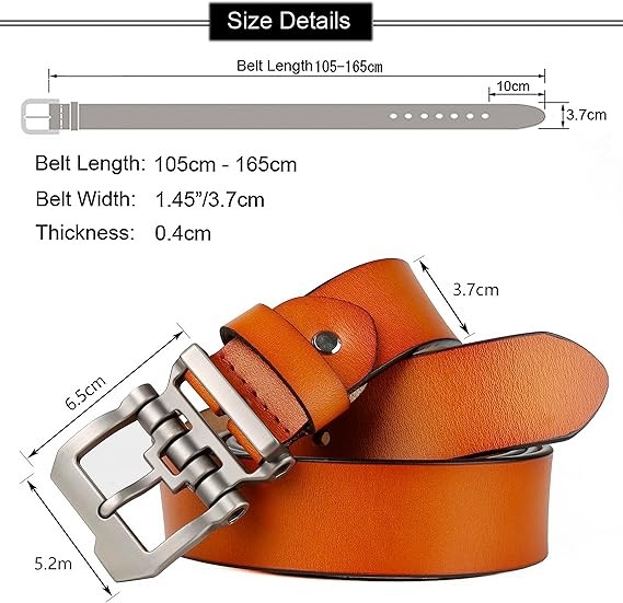 Real Material : These Belts for men are made of Genuine cowhide, which are strong and durable. The fashion style design buckle is made of Zinc Alloy.The heavy Duty Buckle is very strong and scratch resistant which made to last. ✿ Mens Belts for Jeans: We have regular sizes and also offer extra large size belts for men big and tall. Please refer to the size chart among the images for further instructions.