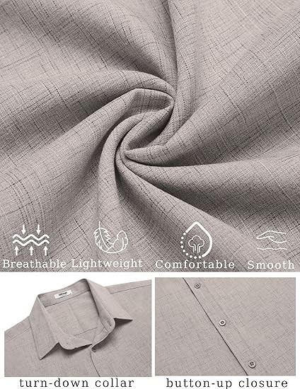 UNLEASH YOUR SUMMER SPIRIT: The COOFANDY men's linen short sleeve button down shirt isn't just a casual untucked beach shirt. Its lightweight, breathable fabric makes it perfect for any summer activity, ensuring you stay comfortable, cool, and stylish whether you're lounging on the beach or attending a summer wedding CLASSIC AND CASUAL DESIGN: Elevate your style with the COOFANDY casual vacation wedding shirt, featuring a button down closure, short sleeve, and a convenient chest pocket. Designed to offer a versatile regular fit and loose fit, this casual untucked vacation wedding dress shirt enhances your summer style effortlessly A SUMMER WARDROBE MUST HAVE: The COOFANDY men's linen wedding dress shirt button up classic yet casual style is perfect for summer vacation. Match it with shorts for a relaxed beach day or dress it up with casual linen pants for a more polished dress look. The button down design and chest pocket add a touch of practicality and elegance, making it suitable for any summer and spring occasion PERFECT FOR EVERY SUMMER OCCASION: From beach parties and tropical getaways to casual vacations and weddings, coofandy cuban big and tall Hawaiian shirt is your go-to choice. Its casual elegance makes it suitable for every occasion, ensuring you always look your best. It's also an ideal gift for husbands, fathers, sons, and friends EASY BREEZY CARE: Keeping your summer style fresh is a breeze with the COOFANDY casual vacation wedding loose fit shirt. Simply machine wash and hang to dry. The durable fabric resists shrinkage and maintains its quality, ensuring you look sharp all season long. For the perfect fit, don’t forget to check our size chart before ordering