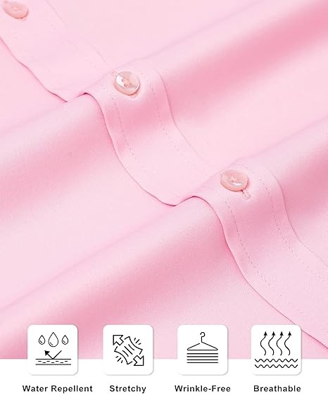 Stain Proof Mens Dress Shirts: Designed with Stain Shield technology material that blocks tough stains/most Oil-based spills before they start and makes to have stains literally roll off the dress shirts long sleeve, and keep clean and elegant all time Slim Fit Dress Shirts for Men: Modern fit with a tapered long sleeves, higher arm holes, and a slimmer cut at the chest and waist. This mens button down long sleeve dress shirts fit type is similar to fitted or classic fit Stretch Wrinkle Free Button Down Shirts: The mens long sleeve dress shirts made of stretch fabric, Fabric stretches and moves with you for extra comfort. airy and water proof, real wrinkle-free after iron and easy care, keep you looking crisp all day Button Down Shirt Men--The formal mens dress shirts button up with long sleeve, spread collar, button clousure, adjustable cuff, no pocket, streamlined design for developed stylish cleaner appearance Occasion: The dress shirt suitable for a variety of Formal/Casual/ Business/Wedding/Party/Club/Dating, the classic dress shirts for men is a perfect gift for family, lovers and friends, staff, Father Day ,Valentine's day, Christmas, New Year