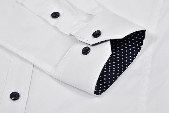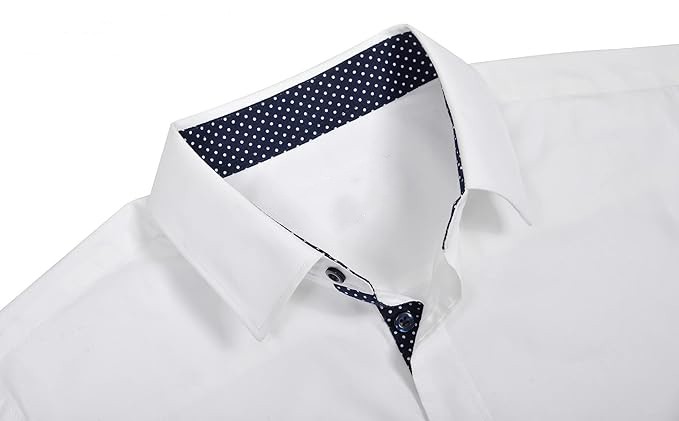 High-Quality Construction: These Men's dress shirts are made from cotton blend material, soft and comfy, They are crafted with care and attention to detail, ensuring a durable and high-quality product. They're designed to last, even with regular wear. Eye-Catching Contrast: These fashion dress shirts for men feature a stylish contrast on the collar and cuff, adding an eye-catching element to any outfit. You can turn up the cuff to show the contrast inside. Fits True to Size: These dress shirts are made with comfortable materials that feel great against your skin. They're available in a variety of sizes to fit for different body type. Versatile Style: These shirts are versatile enough to dress up or down. They can be worn with dress pants for a formal look, or with jeans for a more casual look. Convenient Care: These fashion dress shirts for men are not only stylish and versatile, but they're also easy to care for. These dress shirts are a practical and convenient addition to any wardrobe.
