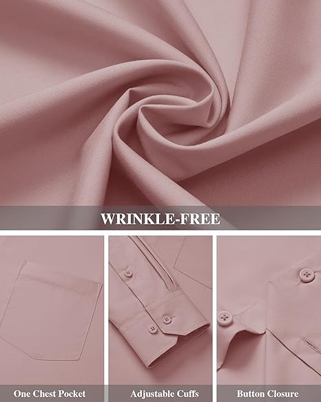 WRINKLE-FREE: The mens dress shirt is made of high quality fabrics and special craftsmanship, wrinkle-resistant and easy to iron and care for, keep the appearance neat and clean, provide you with a comfortable wearing experience CLASSIC DESIGN: This wrinkle-free shirt features a single chest pocket for small items or decorations. Spread collar, button placket, adjustable cuffs for a classic look that flatters most body shapes OCCASION: Business/ Wedding/ Party/ Dating/ Office/ Nightclub, this mens formal shirt is the perfect choice for both formal events and everyday casual wear when paired with a suit, vest, bow tie, and dress pants Size: The button down long sleeve shirts are US regular fit tailoring style,a variety of sizes and colors for you to choose,please refer to the size chart to choose the size that suits you Washing Method: Mens shirt is recommended to hand wash or machine wash in cold water to protect the fabric's texture and color. The dress shirt can be ironed at low temperatures