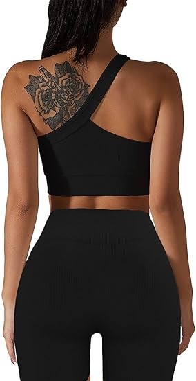 [Unique sports bra]: The removable chest pad gives you freedom of choice and convenience of washing. Wide one shoulder strap make you feel unfettered and doesn't slide down. Our ribbed workout sets for women, girls, athletes, exerciser is high impact and wear-resistant.