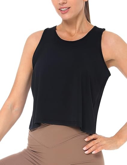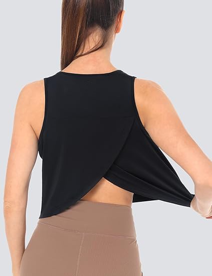 Women's Cropped Workout Tank Tops Open Back Sleeveless Sports Yoga Tops Active Shirts