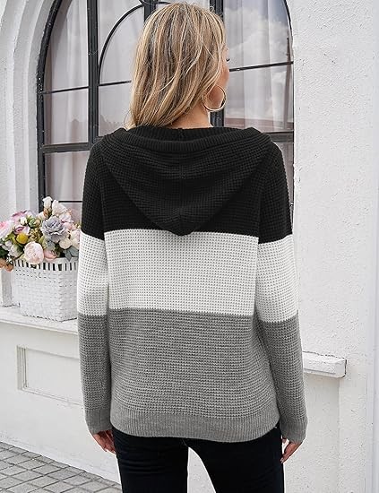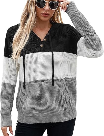 For an oversized look, choose your normal size; for a fitted look, choose one size smaller. Please consult the size chart before placing your order to ensure the best fit. Model is wearing size S and is 5'9'' tall, BWH: 33.8'', 24.8'', 36.2''. S=4-6, M=8-10, L=12-14, XL=16-18. Fall Oversized Hoodies: Wear this cozy trendy sweater hoodie with three buttons that you can open or close as needed. The cuffs and hem are designed with elastic ribbed patterns, adding a sense of fashion and fit. Knitted Long Sleeve Sweatshirts: Comfy drawstring hoodie with a kangaroo pocket is a classic design that gives you a casual style. It is also convenient to carry things like phone or keys and keep your hands warm.