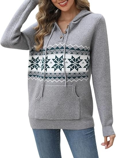 For an oversized look, choose your normal size; for a fitted look, choose one size smaller. Please consult the size chart before placing your order to ensure the best fit. Model is wearing size S and is 5'9'' tall, BWH: 33.8'', 24.8'', 36.2''. S=4-6, M=8-10, L=12-14, XL=16-18. Fall Oversized Hoodies: Wear this cozy trendy sweater hoodie with three buttons that you can open or close as needed. The cuffs and hem are designed with elastic ribbed patterns, adding a sense of fashion and fit. Knitted Long Sleeve Sweatshirts: Comfy drawstring hoodie with a kangaroo pocket is a classic design that gives you a casual style. It is also convenient to carry things like phone or keys and keep your hands warm.