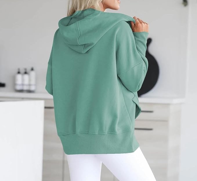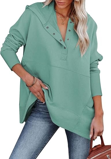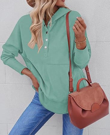 Features: This trendy hoodie sweatshirt for women features long sleeves, a button-down V-neck, a large kangaroo pocket, and an oversized design for a relaxed and baggy appearance. The cuffs, hem, and pocket edges are ribbed for ample elasticity, offering a superior wearing experience suitable for any body type. It's a great addition to your wardrobe.