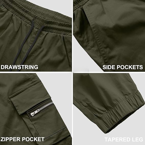 Mens Cargo Jogger Pants Elastic Waist Drawstring Regular with Zipper Pockets Cotton Pants for Men