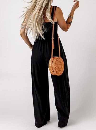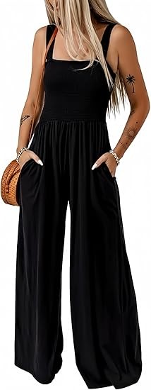 Women's Overalls is made with lightweight and soft material, which are smooth, elastic and stretchable, flexible and breathable, comfortable to wear. Not see through. Feature: One Piece Sleeveless Jumpsuits, Square Neck, Wide Leg Pants, Two Side Pockets, Solid Color, Stretchable Long Pants Jumpsuit, Loose Fit, Casual Style. Match: Great with jacket, sneakers, Sandals, Heels and Beach hat for outwear. A perfect jumpsuit for your summer. Wear a cardigan over wide leg jumpsuit /dress on cool weather. Ocassion: One Piece Fashion Long Jumpsuit Overalls Suitable for Beach, Travel, Vacation, Office, Streetwear, Cocktail, Daily Life. Perfect Match with T-Shirts, Tops, Blouse and Sneakers.