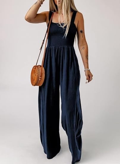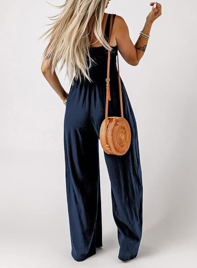 Women's Overalls is made with lightweight and soft material, which are smooth, elastic and stretchable, flexible and breathable, comfortable to wear. Not see through. Feature: One Piece Sleeveless Jumpsuits, Square Neck, Wide Leg Pants, Two Side Pockets, Solid Color, Stretchable Long Pants Jumpsuit, Loose Fit, Casual Style. Match: Great with jacket, sneakers, Sandals, Heels and Beach hat for outwear. A perfect jumpsuit for your summer. Wear a cardigan over wide leg jumpsuit /dress on cool weather. Ocassion: One Piece Fashion Long Jumpsuit Overalls Suitable for Beach, Travel, Vacation, Office, Streetwear, Cocktail, Daily Life. Perfect Match with T-Shirts, Tops, Blouse and Sneakers.