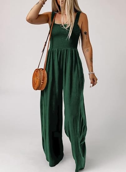 Women's Overalls is made with lightweight and soft material, which are smooth, elastic and stretchable, flexible and breathable, comfortable to wear. Not see through. Feature: One Piece Sleeveless Jumpsuits, Square Neck, Wide Leg Pants, Two Side Pockets, Solid Color, Stretchable Long Pants Jumpsuit, Loose Fit, Casual Style. Match: Great with jacket, sneakers, Sandals, Heels and Beach hat for outwear. A perfect jumpsuit for your summer. Wear a cardigan over wide leg jumpsuit /dress on cool weather. Ocassion: One Piece Fashion Long Jumpsuit Overalls Suitable for Beach, Travel, Vacation, Office, Streetwear, Cocktail, Daily Life. Perfect Match with T-Shirts, Tops, Blouse and Sneakers.