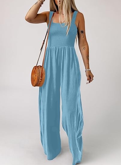 Women's Overalls is made with lightweight and soft material, which are smooth, elastic and stretchable, flexible and breathable, comfortable to wear. Not see through. Feature: One Piece Sleeveless Jumpsuits, Square Neck, Wide Leg Pants, Two Side Pockets, Solid Color, Stretchable Long Pants Jumpsuit, Loose Fit, Casual Style. Match: Great with jacket, sneakers, Sandals, Heels and Beach hat for outwear. A perfect jumpsuit for your summer. Wear a cardigan over wide leg jumpsuit /dress on cool weather. Ocassion: One Piece Fashion Long Jumpsuit Overalls Suitable for Beach, Travel, Vacation, Office, Streetwear, Cocktail, Daily Life. Perfect Match with T-Shirts, Tops, Blouse and Sneakers.