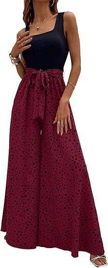 Material:Polyester and spandex.Well made,comfortable fabric.Casual comfy as pajama pants,lightweight and breathable. Design:Dalmatian print,colorblock,sleeveless,square neck,wide leg,empire waist,tank top jumpsuit,with belt,loose and casual style will be your best choice in summer! Occasion:The tank top jumpsuits for women are perfect for spring,summer,fall,going out,beach,vacation,shopping,homeware,date,yoga,party,club,garden party,wedding,cocktail,honeymoon,work,any outdoor or indoor activities. Match:You can pair this color block wide leg pants with variety of shirts,blouses,tunics,sandals,sneakers or heels to complete casual look that's easy to love all season long to show your curves and flatter your body.