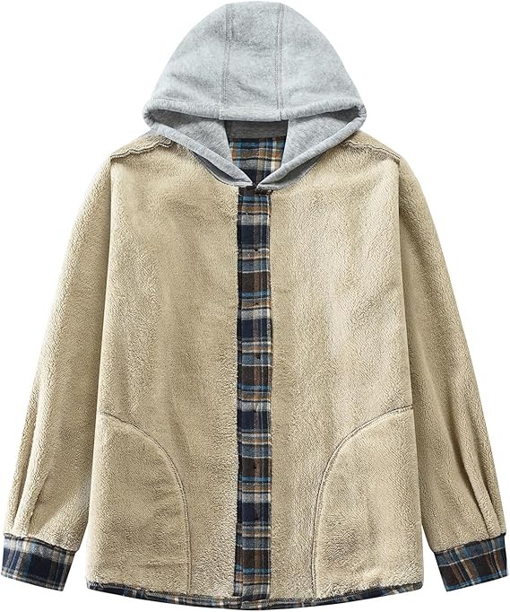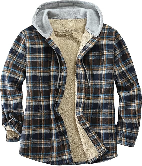 Comfortable Fit: This long sleeve flannel shirt crafted with a 100% Cotton flannel shell and soft beige sherpa lining will keep you warm all season long. Your new wardrobe favorite. Features: Button, long sleeves(The sleeves lined), 2 side pockets, drawstring hood, plaid element outer and fuzzy fleece inside, to provide extra warmth and comfort. Size: Our flannel shirts are regular fit style, a variety of sizes and colors for you to choose, please refer to the size chart to choose the size that suits you. Occasion: This is a versatile hooded jacket that will look stylish with your Tshirt and jeans. Perfect For Daily Wear, such as hiking, trekking, camping, hunting, biking and other outdoor activities. Any occasion is perfect in Spring, Fall and Winter.