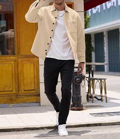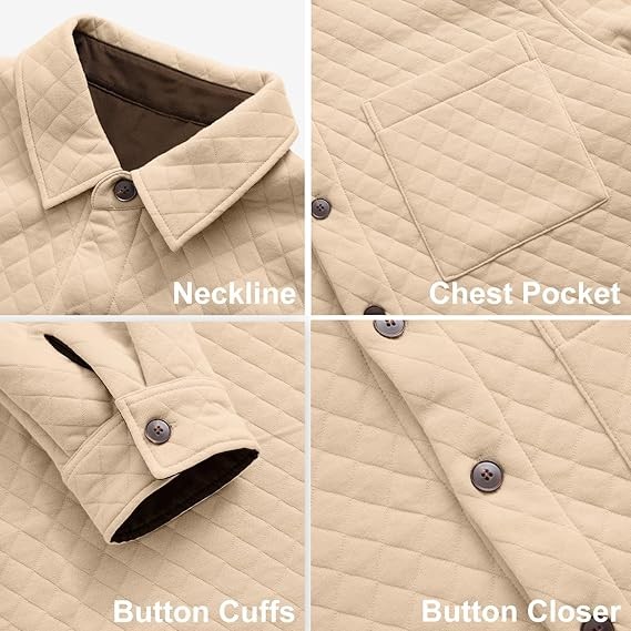 【HIGH-QUALITY FABRIC】:3D Waffe Pattern ,Men's jacket is made of lightweight warm Featured with 3D waffle pattern quilted design,giving this jacket stylish and unique sense, . 【Fashion Design】The lightweight casual jacket features classic button down design, shirt collar, solid color, 1 chest flap pocket. This long sleeve shirt jacket also includes two button cuffs which can be rolled up easily, giving you option to wear it full sleeves or 3/4 slkeeves. 【Suitable for Any Occasion】: Great for daily, casual wear, home, work, job,outdoor, school, sports, running, hang out, shopping, party, holiday, travel, fashion street look,outerwear,etc.
