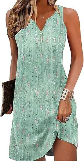Material: 95%Polyester,5%Spandex.Skin-Friendly,Breathable,Nice and more of a soft stretchy feel.Not see through,Not shrinkage,Lightweight,Ideal for summer weather. Features:This dress features a V-neck,Sleeveless,Floral Print design.The A-line silhouette flatters all body shapes.Ideal for vacation or everyday wear,Is a must-have for the fashion-forward woman. Occasion: Whether you're heading to the beach,A dinner out,Or a casual day of shopping,This dress is versatile enough to suit any occasion.Pair it with sandals for a laid-back look or dress it up with heels and accessories for a more polished ensemble. Attention:Machine or hand wash with cold water/Hang or line dry/No bleach. Please forgive the slight color difference caused by different computer and mobile phone monitor settings.