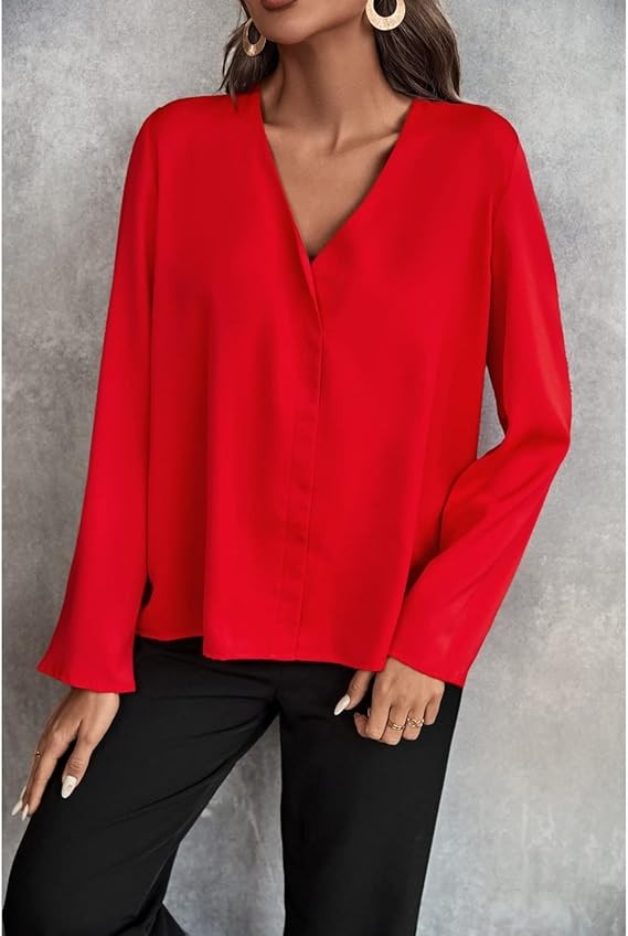 Women's Long Sleeve Shirts V Neck Business Casual Plain Work Blouses Tops
