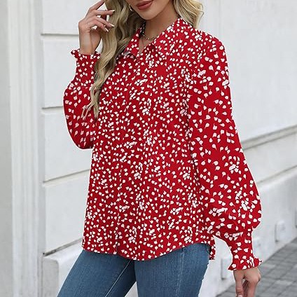 Womens Button Down Shirts Smocked Cuffed Blouse Printed Lantern Shirt Long Sleeve Top Collar Business Fashion
