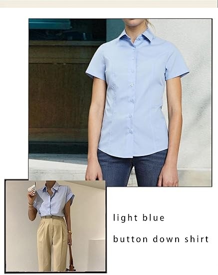 Easy to Create an Elegant Look: Women's button down shirts are made from 100% polyester fiber, comfortable to wear Features Designs: Women's oxford shirt with a spread collar, solid color, and a button-down closure feature a unique cut at the waist that flatters the figure Easy to Partner:Our women's short sleeve button up shirts are perfect for both professional and casual use. This chic women's blouse can be paired with suit pants/leggings for an easy professional/casual look