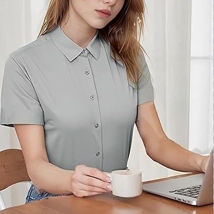 Easy to Create an Elegant Look: Women's button down shirts are made from 100% polyester fiber, comfortable to wear Features Designs: Women's oxford shirt with a spread collar, solid color, and a button-down closure feature a unique cut at the waist that flatters the figure Easy to Partner:Our women's short sleeve button up shirts are perfect for both professional and casual use. This chic women's blouse can be paired with suit pants/leggings for an easy professional/casual look