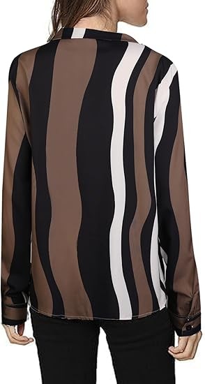 Women Pattern Print Button Down Blouse Top Long Sleeve Work Business Shirt