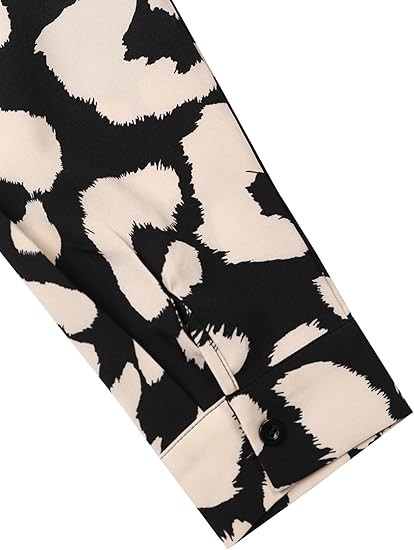 [Material]: The business casual blouse made of Polyester, chiffon feeling fabric and no stretch; very soft and comfy, close to skin [Features]: Dalmation print shirt for women, casual v neck, long sleeve, button down, lapel collar, trendy leopard print / polka dot print / solid color, relaxed fit [Occasion]: Elegant work blouse, with stylish printed pattern, perfect for work, business, office, date, cocktail, club, wedding, holiday, shopping or daily casual wear [Style]: Casual, elegant and cute style, this fashion leopard print top can be worn with denim jeans, skinny pants, shorts, boots and heels in Summer/ Fall/ Winter/ Spring