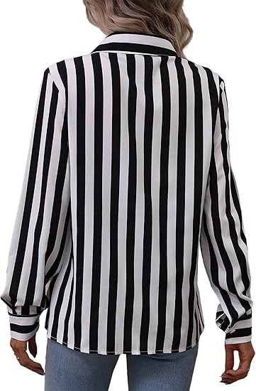 Women Pattern Print Button Down Blouse Top Long Sleeve Work Business Shirt