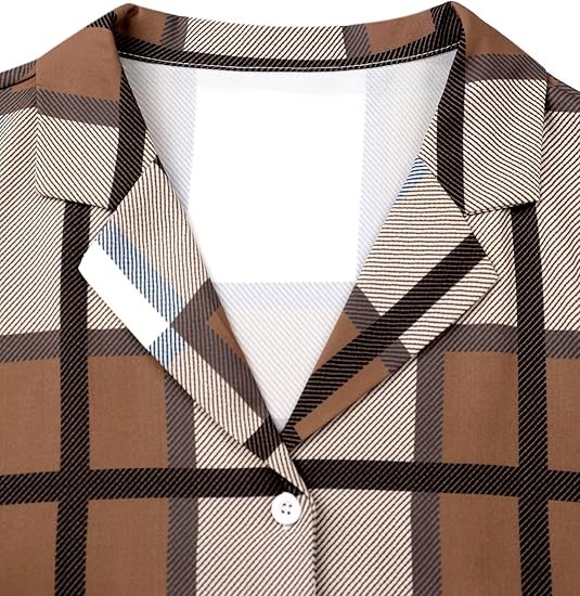 Women Pattern Print Button Down Blouse Top Long Sleeve Work Business Shirt