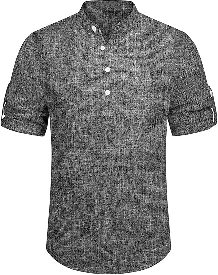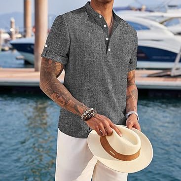 PREMIUM FABRIC】: The summer beach shirt is made of high-quality fabric, which is lightweight, breathable, soft to the touch, moisture-wicking and non-fading. 【CASUAL & FASHION】: Mens casual chambray shirt comes with band collar, button-down closure, rounded hem. The henley shirt can be worn with the sleeves rolled up or down, keep you cool and relaxed all the time especially in hot summer. 【CLOTHING MATCH】: Men's short sleeve summer shirt could be easy to match with slacks, chinos, jeans or dress pants to create a simple yet stylish look. Wear with shorts, sunglasses and a hat for the perfect beach vacation look.