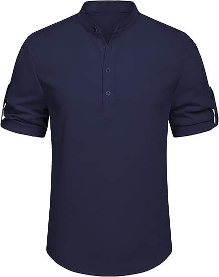 【CASUAL & FASHION】: Mens casual chambray shirt comes with band collar, button-down closure, rounded hem. The henley shirt can be worn with the sleeves rolled up or down, keep you cool and relaxed all the time especially in hot summer.