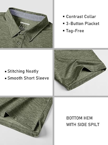 MATERIAL: 95% Polyester & 5% Spandex, Silky-soft, Durable, Lightweight, Breathable And Comfortable. MOISTURE WICKING: This Polo Shirts will quickly dry all while remaining soft, lightweight and breathable. STRETCH FABRICS: This performance golf polos have an athletic, regular fit, which allows for great mobility in any direction. This casual wardrobe-essential polo features a lightweight fit for everyday wear. COMFORTABLE: Classic spread collar and 3-button placket for a custom fit, tag-free neck reduce chafing, side slit design and rib knit cuffs for added comfort. GREAT FOR: Daily Wear, Bussiness Wear, Office Wear; Sports & Outdoor Activities: Like Golf, Tennis, Running, Training, Workout, Jogging, Hiking, Camping,and Other Sports. Comfortable for both indoor and outdoor wears in summer, spring or fall.