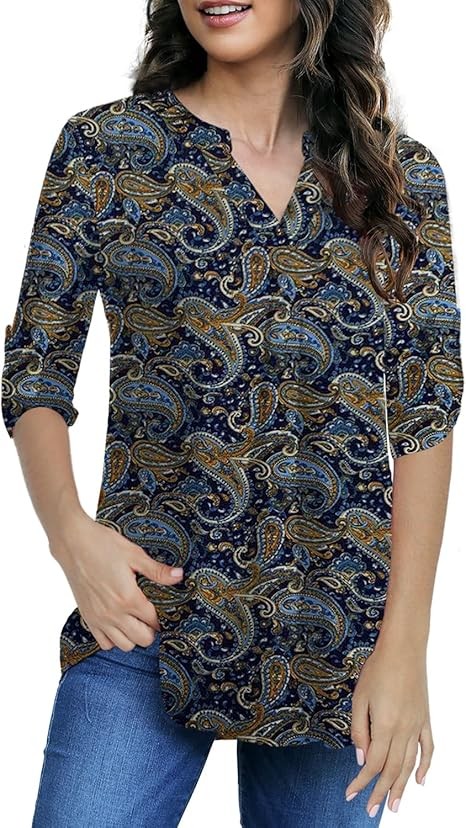 Womens Tops Dressy Casual 3/4 Sleeve Shirts Tunic Blouses Plus Size Tops for Women