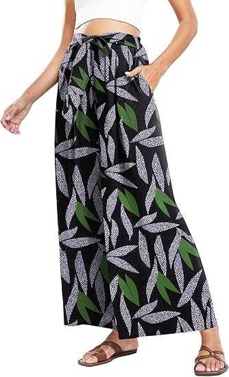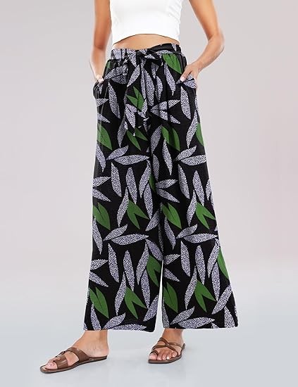 【Note Size】Loose dress pants for women for S- XXL, please refer to the picture on detail page ,loose pants for women high waist,wide leg beach pants for women,high waisted boho pants, flowy pants for women,high wasted pants,tie front flowy wide leg pants.