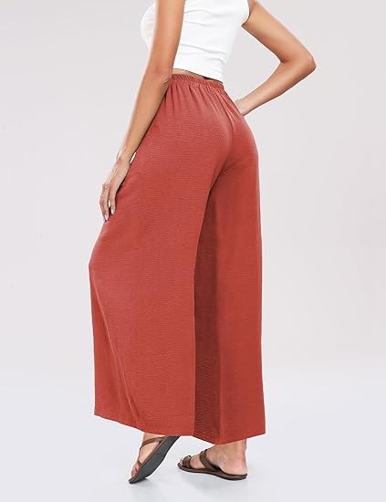 Classic &Comfort】Wide leg high waisted pants for women are made of high quality linen & cotton blend fabric, flowy beach pants lightweight and soft, skin-friend.