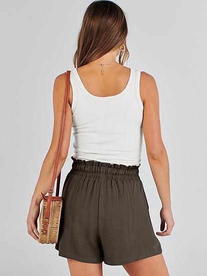 Linen Shorts for Women Casual High Waisted Wide Leg Drawstring Cute Summer Beach Shorts 2024 Fashion Vacation Outfit