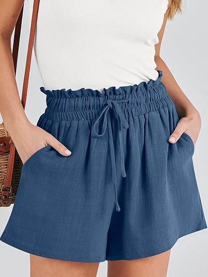 Linen Shorts for Women Casual High Waisted Wide Leg Drawstring Cute Summer Beach Shorts 2024 Fashion Vacation Outfit