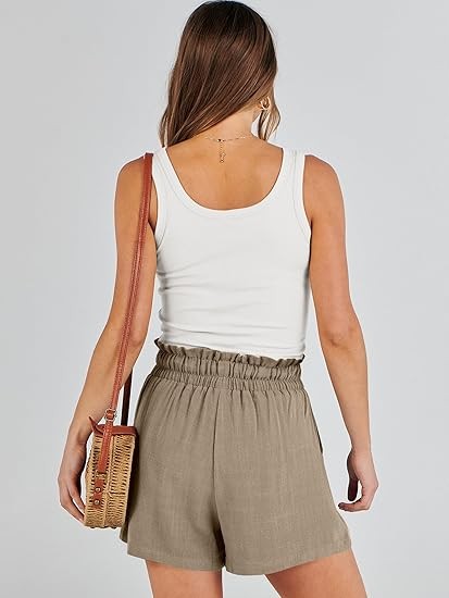 Linen Shorts for Women Casual High Waisted Wide Leg Drawstring Cute Summer Beach Shorts 2024 Fashion Vacation Outfit