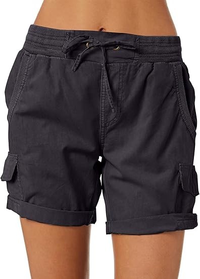 Stay Cool and Stylish: Stay cool and comfortable in our women's shorts made with 98% cotton and 2% elastane for a soft and skin-friendly fit Stay Active and Comfortable: Our sports shorts come with 4 multifunctional pockets, 2 decorative fake pockets on the buttocks (without back pockets), and an adjustable drawstring waist to stay organized during outdoor adventures Get Ready for Adventure:Take on any outdoor activity with ease in our cargo shorts, perfect for hiking, camping, traveling, and fishing.