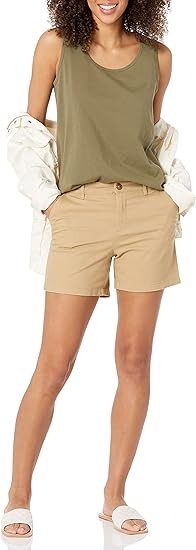 CLASSIC KHAKI SHORT: These classic Khaki shorts are the ultimate summer style. Offering a clean, gently structured silhouette, these shorts also fit with comfort and ease for at work, weekend exploring, or running errands. Complete your look with Essentials Women's Sneakers or Sandals.