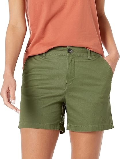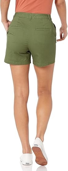 STRAIGHT FIT: Slim fit through the hip and thigh, straight through the thigh and leg opening. Also offered in Curvy sizes for a curvier fit through the hip and a narrower waist. STRETCH COTTON TWILL: Washed for softness, this cotton twill is naturally breathable and has a bit of stretch for comfort and flexibility. CLASSIC KHAKI SHORT: These classic Khaki shorts are the ultimate summer style. Offering a clean, gently structured silhouette, these shorts also fit with comfort and ease for at work, weekend exploring, or running errands. Complete your look with Essentials Women's Sneakers or Sandals.