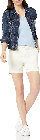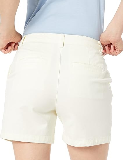 STRAIGHT FIT: Slim fit through the hip and thigh, straight through the thigh and leg opening. Also offered in Curvy sizes for a curvier fit through the hip and a narrower waist. STRETCH COTTON TWILL: Washed for softness, this cotton twill is naturally breathable and has a bit of stretch for comfort and flexibility. CLASSIC KHAKI SHORT: These classic Khaki shorts are the ultimate summer style. Offering a clean, gently structured silhouette, these shorts also fit with comfort and ease for at work, weekend exploring, or running errands. Complete your look with Essentials Women's Sneakers or Sandals.