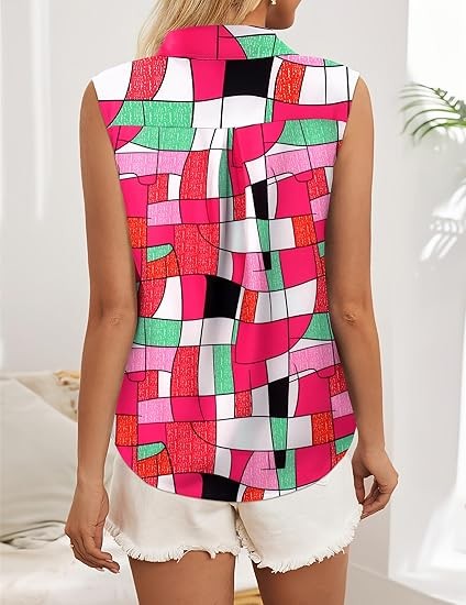Quality Sleeveless Tops - Crafted from premium fabric 92% polyester and 8%Spandex, soft to the touch, lightweight and comfortable Classic Collared Shirts - Spread collar, button-up front closure, curved hem, clean chest-cut design for adding effortless enhancement to your silhouette and bringing business professional polish to any outfit Versatile Button Down - You can dress down with jeans, shorts,denims for relaxed yet polished casual look or dress up with skirts, slacks or dress pants for a dressy and professional look. Tuck for dressy casual look while untuck for a more business casual look
