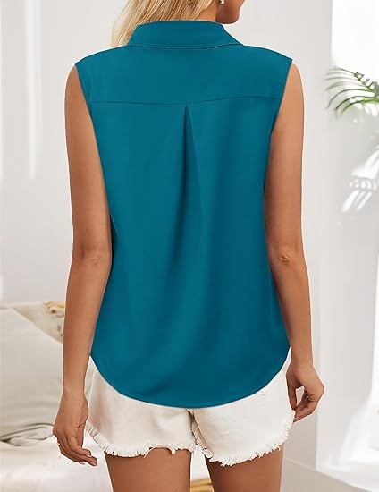 Quality Sleeveless Tops - Crafted from premium fabric 92% polyester and 8%Spandex, soft to the touch, lightweight and comfortable Classic Collared Shirts - Spread collar, button-up front closure, curved hem, clean chest-cut design for adding effortless enhancement to your silhouette and bringing business professional polish to any outfit Versatile Button Down - You can dress down with jeans, shorts,denims for relaxed yet polished casual look or dress up with skirts, slacks or dress pants for a dressy and professional look. Tuck for dressy casual look while untuck for a more business casual look